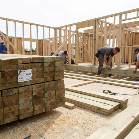 This timber is regularised (planed all round) for consistent sizing, typically finishing approximately 2mm off nominal thickness and 5mm off nominal width. For example, a 47mm × 150mm section will finish at around 45mm × 145mm, with eased edges for safer handling and easier fixing.